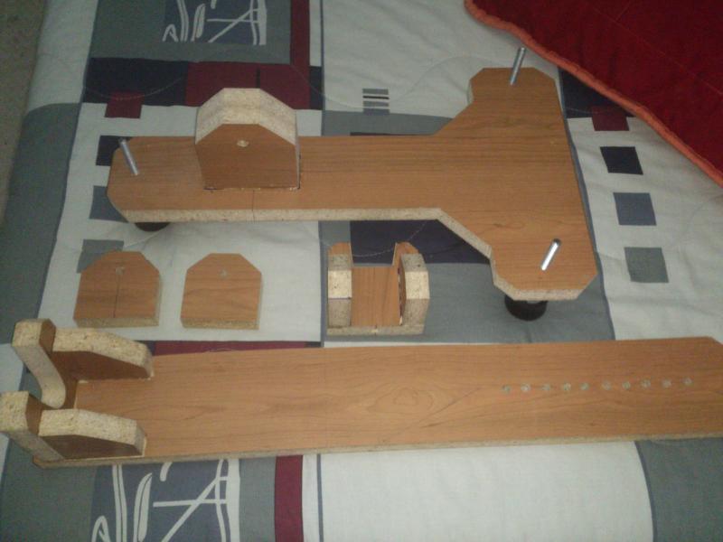 No apoya sobre el aglomerado, en las fotos no se nota xq la carabina es negra, pero en los apoyos tiene cinta adesiba de goma. ya era un detalle q tenia previsto y aprobechando q tenia esa cinta de goma autoadesiva x casa... jeje :)