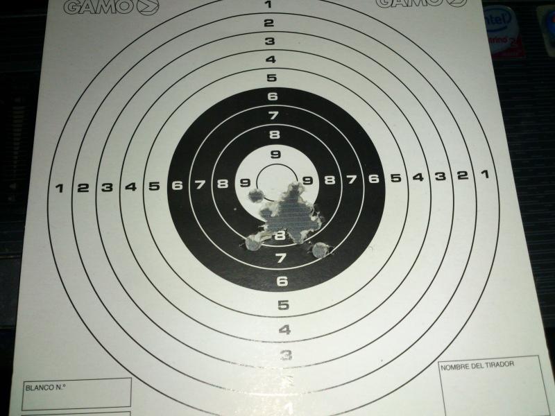 Despues de ver cn q balin agrupaba mejor.... me dedique a centrar el visor, y al final de la tarde acabe con esta diana: