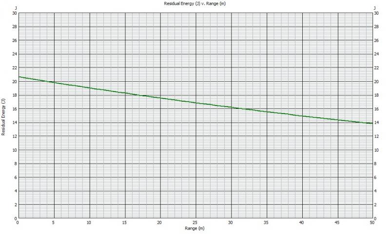 Energía retenida. 20J de Eo, 80 mts de rango, calibre 4,5 balín jsb exact