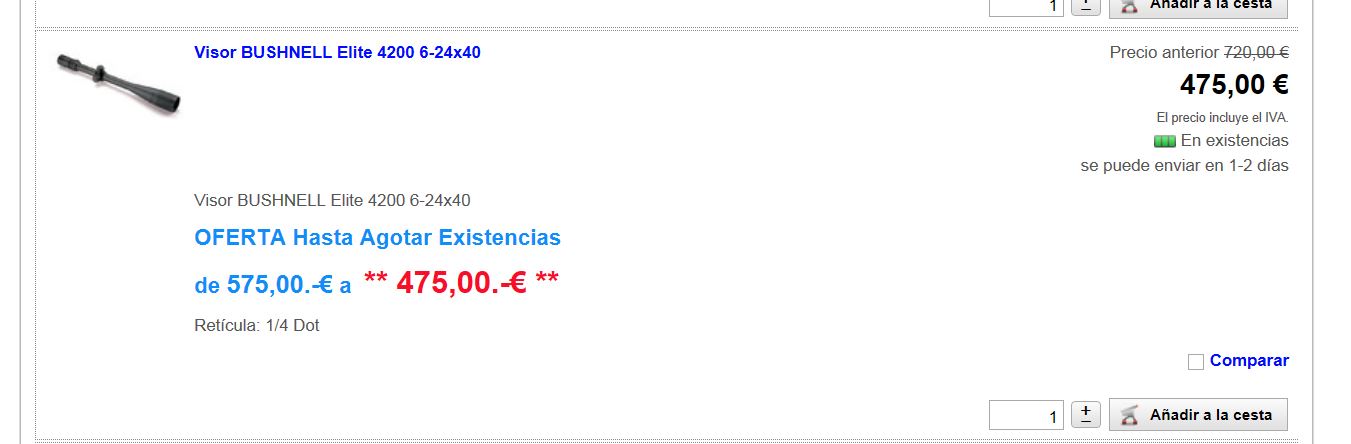 manolosolo, buenos días. Si es una buena oferta, pero está reservado. Agradezco lo comentado. Voy a echar un ojo al Bushnell Elite 4.200 a ver que tal. Espero más ideas y opiniones. Gracias.