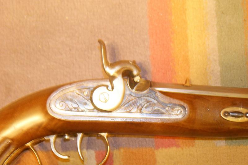 Yo tuve una como esa en 1988. Fue mi primer pistola, comprada en Trelles. El martillo te ha quedado muy bien. Ha ganado el arma. Es un tipo "Patriot" de doble gatillo, copia o imitación de dicho modelo americano, también se parece a las copias William Parker London que ahora hace Ardesa. Supongo que será de calibre 44 o 45. Fabricada creo por Arízaga. Si se afina el pelo y las estrías no son muy ásperas en las mesetas está muy bien para iniciarse en Kuchen.