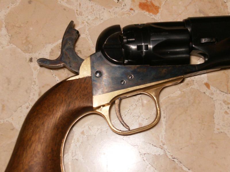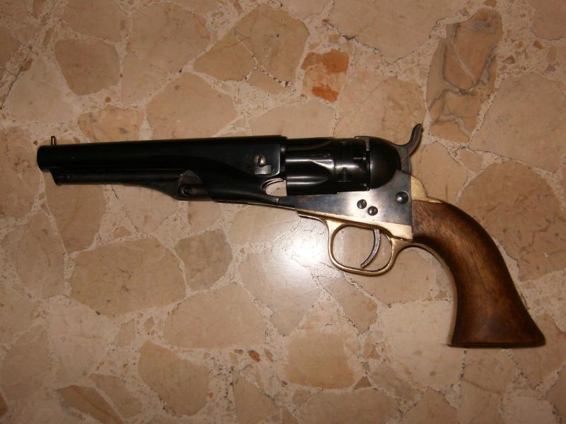 Fabricante Army San Marco: Cal.36. Tambor acanalado de 5 disparos. 5,5 pulgadas de cañón, cilíndrico. Pienso que es un Colt 1862 Pocket Police, pero no estoy del todo seguro. El punto de mira creo que está cambiado. ¿podriais decirme como sería el original?