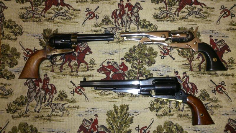 Un Colt Pony Expres de cal 36 de Pietta, el Pacificador del 45LC del mismo, y el Remington Conversion 45 LC de Uberti..