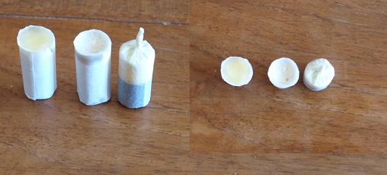 Con el truco de la broca te ahorras manipular. Los lio por abajo, les pongo un poco de cola blanca y luego machaco el culo contra un trozo de adoquin. Queda un 'colute' totalmente plano y con cierta rigidez.