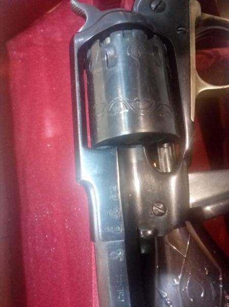 Lo siento mucho, pero no puedo reconocer el número. Por favor anótalo. El revólver es un tipo 1 grabado a mano, una copia de bajo costo. El modelo no se ajustaba al gusto del público en general, por lo que no se produjeron muchos, ¡supongo! Hay uno en la base de datos y este sería el segundo. Sobre la calidad, etc., puedes leer todo en mi página. Todavía estoy buscando un traductor. Por favor, toma buenas fotos que puedo poner en la página. ¿El mango también tiene el número de serie desde adentro? Imágenes en detalle del mango, los estampados y el grabado del tambor.
