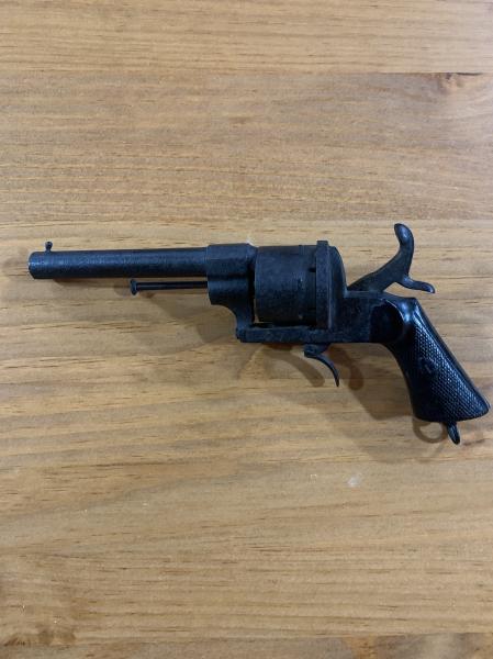 Es un Revólver Lefaucheux, seguramente alguna copia eibarresa, si tuviera algún marcaje te podríamos ayudar más