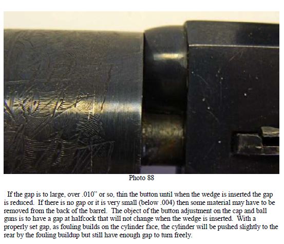 Las replicas de estos revólveres suelen ser aproximaciones a lo que era un revolver real de la época, sujeto a las especificaciones y controles de calidad del ejercito, de esto Uberti no se libra, y detalles que el 90% de los clientes no aprecia, y cuestan dinero, los obvian, hablo de ajustes y especificaciones muy concretas, la pastilla que le pongo en la foto para ajustarlo viene esplicadada en este documento, son 4 documentos que colgaré en un hilo a parte denominado "Tuning_the_Uberti_Open_Top_Revolvers".