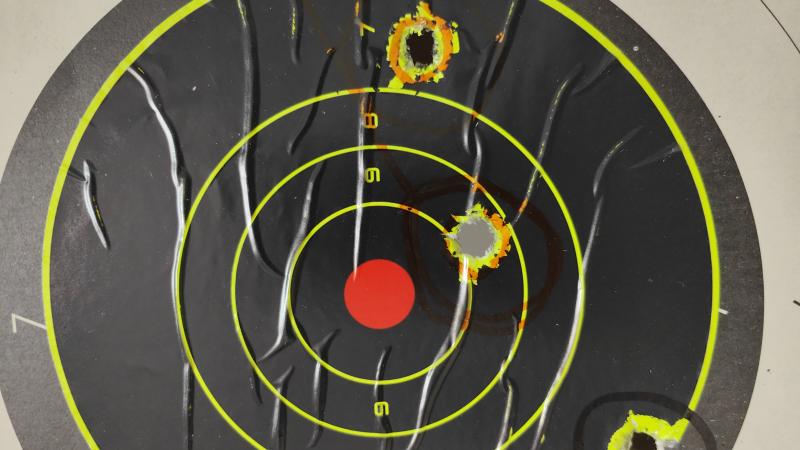 La primera diana està al reves, el primer tiro, alto y a la derecha, el segundo entró en el negro, ambos con 60g, el tercero rompió la linea del 10, con 90g de polvora suiza N° 2.