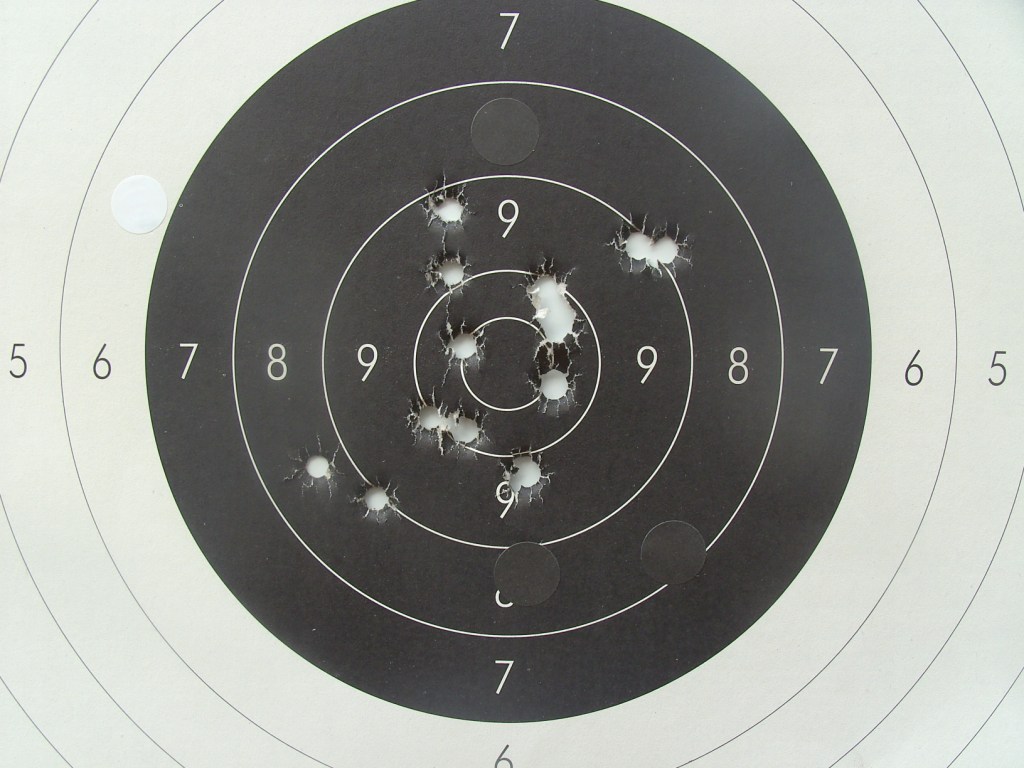 Tras tres disparos de aproximación (en el tercero he tocado blanco) he tirado una serie completa.