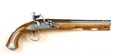 Durante el otoño y el invierno de 2006 Jack construyó su primera avancarga en 11 años. La comisión fue de una pistola que sería un icono de su obra, una declaración artística global y concisa de los armeros de arte y artesanía. Cuando estrechamente hojeando la pistola del momento, uno detecta la influencia del Inglés armero señaló John Twigg, pero también observa fácilmente que no es una copia. El bloqueo de la piedra, distintivo de esta plata montada pistola se parece mucho a uno por "Thwaits de Bath", que se puede ver en la página 54, en el Neal & Negro, "Gran armeros británicos ~ 1740-1790", diseñado con un vínculo único anti-fricción unidas a la cola del pan-frizzen cubierta. Jack comentó con su risa fácil, "yo siempre había querido ver si podía hacer una de esas ..." Todas las monturas de plata: guarda, dedales, escudo, esculpido placa lateral, fueron construidas de hoja, cincelado a mano y grabada por Jack, incluso el impresionante "grotesco" máscara tapa del trasero estribo, y aunque esta arma de fuego personales sigue de cerca el estilo del siglo 18 Inglaterra, esta pieza es totalmente "Jack Haugh". Esta pistola de cola a lo largo y mencionadas hayan superado las más altas expectativas del cliente y, de hecho servirá como una representación definitiva de la obra de Jack Haugh a través de los siglos. Se ha convertido en un componente integral de una colección de pistolas que se está formando a presentarse como registro de los muchos artesanos finos que trabajan en el campo hoy.