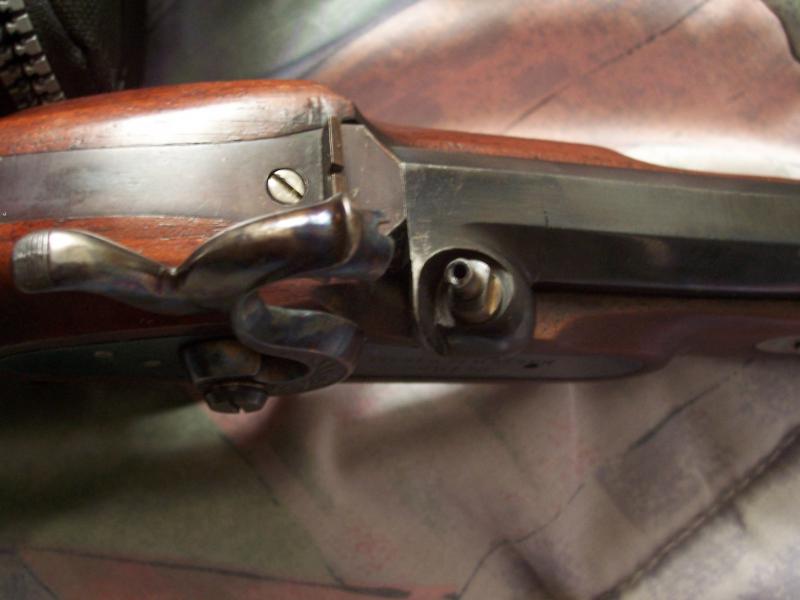 El Hawken Match tiene el mismo diseño. En el caso de mi Hawken el anterior propietario le taladró un orificio como tiene el Gibbs por el lado contrario del de la chimenea tapado con un tornillo. Esto también permite el lavado del cañón sin desmontar la chimenea, pero yo prefiero inspeccionar la chimenea y su asentamiento después de cada sesión de tiro.