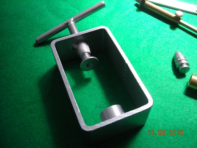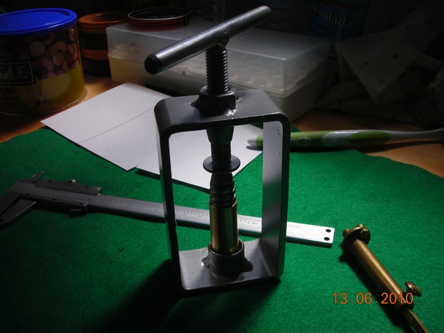 Os pongo unas fotos de una prensa casera que me he hecho para "retacar" los cartuchos metálicos del Sharps aunque serviría para otro tipo...