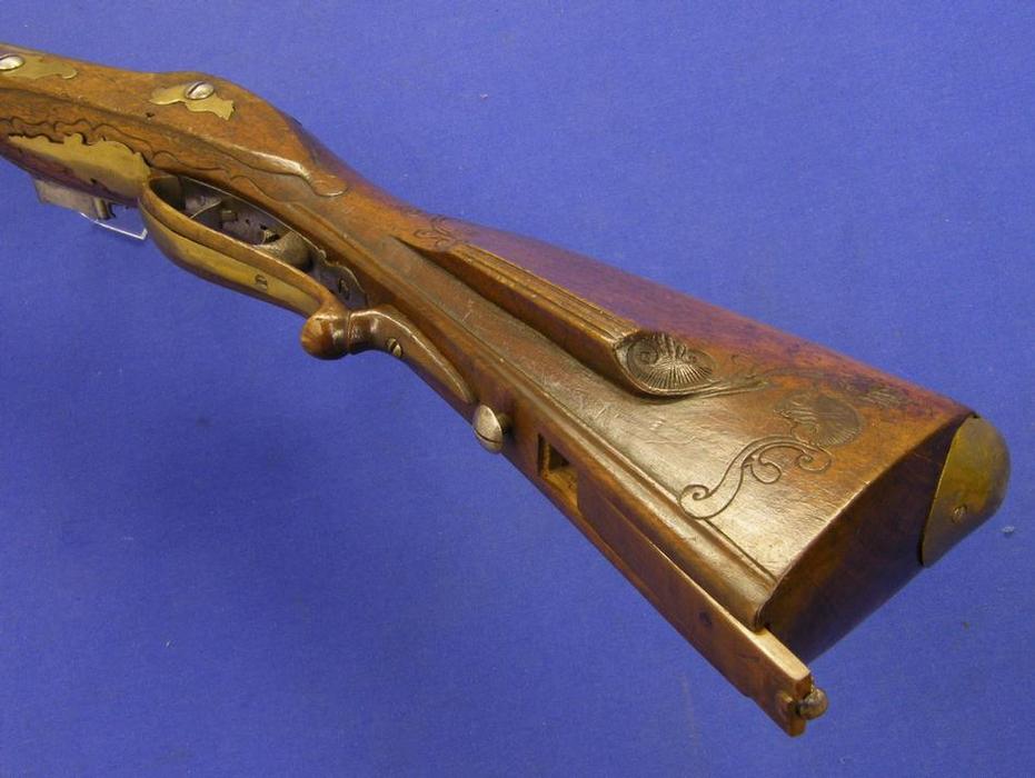 Precioso rifle aleman del siglo XVIII, calibre de 15 mm rifled (Rifled.- estriado, supongo que se refiere)envergadura de 122 cm. en muy buenas condiciones. 3.500 euros tienen la culpa.