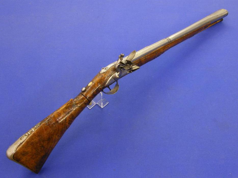 Pues eso, otro rifle aleman del siglo XVIII con cañon turco decorado en plata del calibre 16 mm. y 137 cm de largo total, en perfectas condiciones y por solo 2.200 euros.