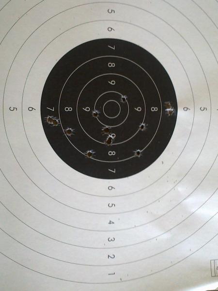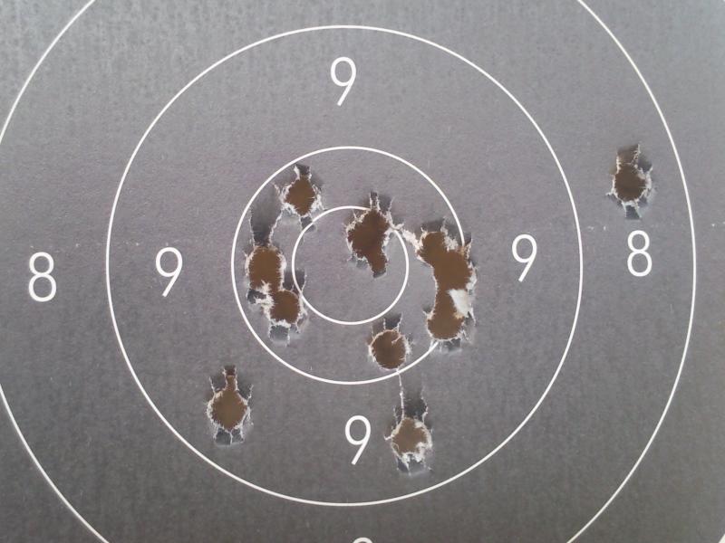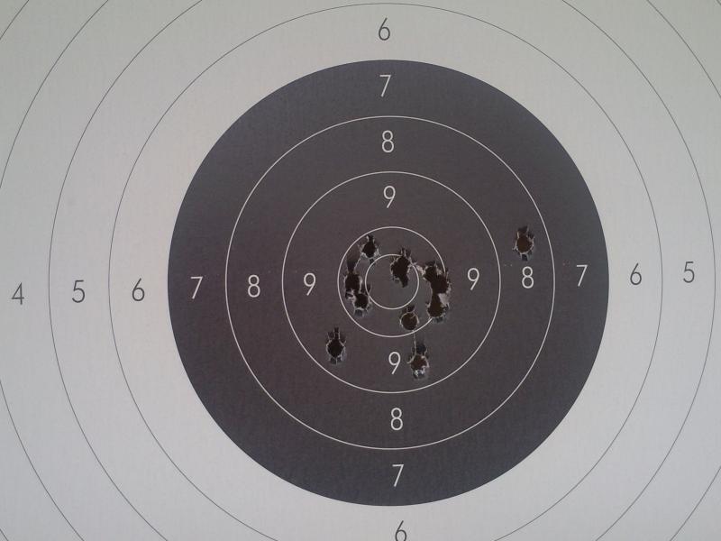 Solo tengo tres errores uno de ellos de "bulto" se me fue claramente el disparo por exceso de tensión, ya que los primeros ocho disparos estaban en el 10.