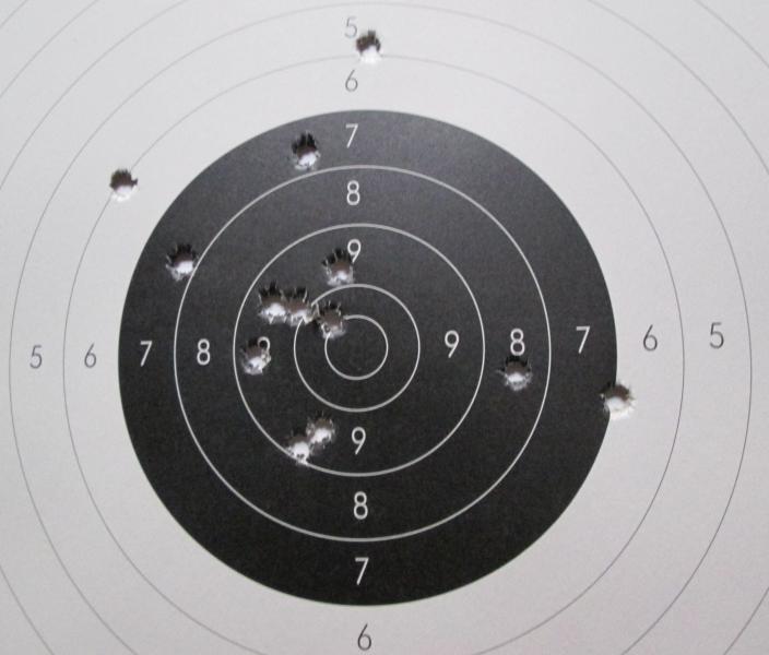 Los dos disparos a la izquierda los he leído perfectamente y lo que más me ha gustado ha sido que he sabido bajar el grupo de dieces alto a otro mas centrado.