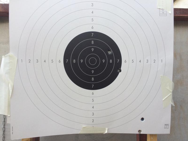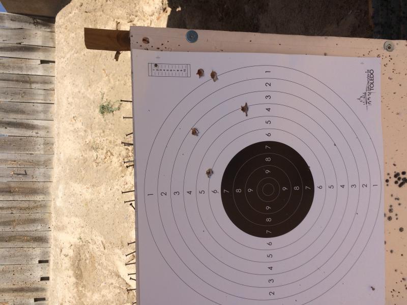 Hoy he ido al campo de tiro,he movido el alza todo a la izquierda por que los tiros se me iban a la derecha y no entraban en el carton y aunque lentamente vamos mejorando a 100 m
