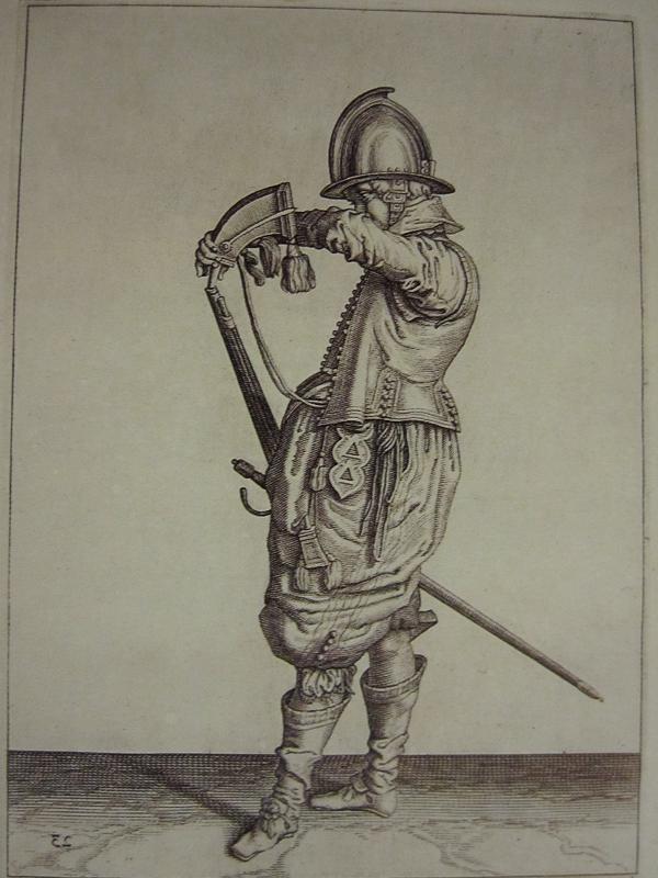 Las imagenes que he puesto pertenecen a Jacob Van Gheyn, holandés maestro del grabado y que durante la ocupación española de Flandes realizó dos libros para la instrucción y uso del mosquete. Estos libros son "Instrucciones para el uso del arcabuz" (sic.) de 1608, según dato del libro "Coleccionismo de armas antiguas" de J.M. Echevarria y "Manual of arms" (sic.) 1607 según "The book of the gun" de Harold L. Peterson. No me queda claro si el sólo los ilustró o también los escribió por lo que es posible que estemos hablando del mismo libro.