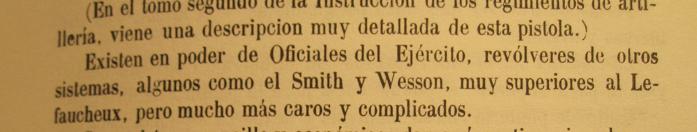 Pero no es menos cierto que por Orden del Presidente del Poder ejecutivo de la República del 24 de noviembre de 1874 ya se recomendó el Smith&Wesson número 3 a los jefes y oficiales que deseasen adquirirlo.