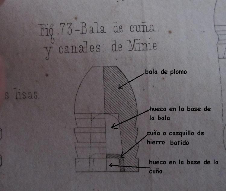 Pero es que esta arma estaba diseñada para disparar el proyectil de base hueca y culote de hierro, o sea, la primitiva bala que Mr Minié diseñó en 1849 y no el diseño posterior de 1854. De ahí las denominaciones como carabina rayada de bala de culote o carabina rayada de bala forzada a cuña.