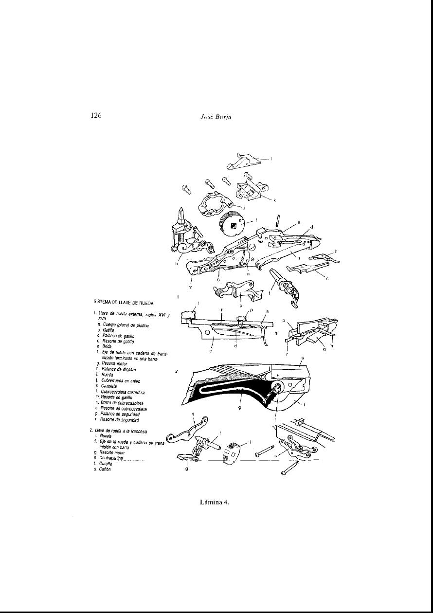 De hecho a lo que José Borja, autor moderno igual que Echeverría y otros que citas, se refiere es que los dos términos resultan sinónimos alguna vez en el tiempo (cierto es mucho tiempo, 200 años de llaves de pedernal), pero de hecho para la llave de rueda utiliza (o prefiere utilizar) gatillo y el dibujo es prueba palpable de ello. Esto yo creo que es muy significativo y es un término que tú desde el primer momento has relegado a la llave de chispa.