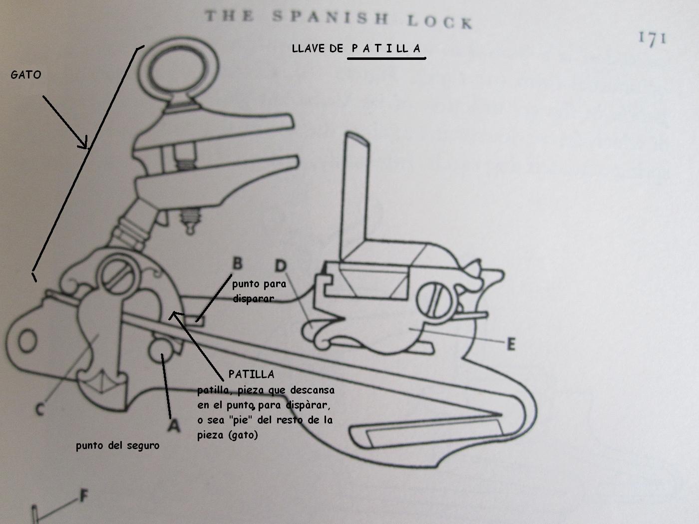 Y les he comentado que "pie de gato" es un término un poco posterior, correspondiente a esa pieza pero en las armas sílex, posteriores al mecanismo de rueda. Pero que podría ser una buena opción, pues es más precisa que martillo y no induce a confusión para los neófitos.