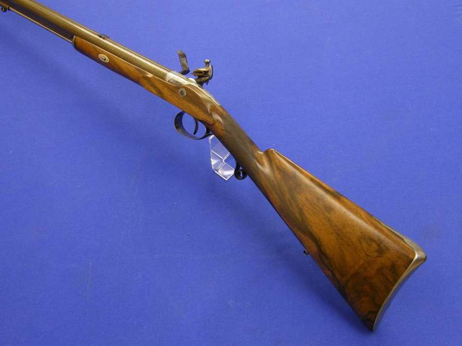 Rarisimo rifle ingles del siglo XIX con llave de silex y de percusion combinadas y cañon para "bolas ceñidas" (¿?), firmado por John Blanck de London, en perfectas condiciones.