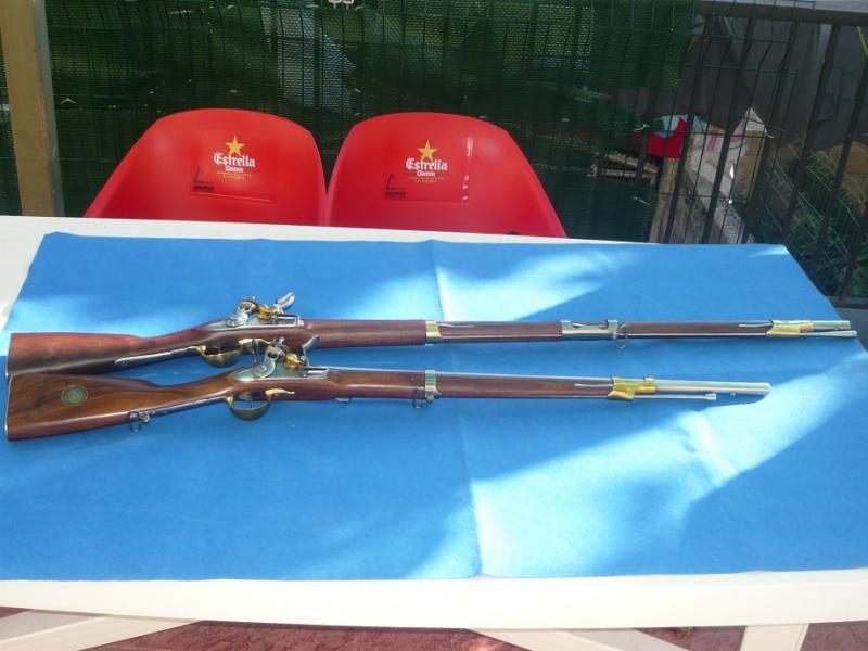 hola a todos.aqui os muestros tres armas que me encantan mucho.son dos rifles modelo an IX(creo que se llaman asi,uno es el modelo largo,del cuerpo de infanteria denominados dragones,y el otro que es mas corto es el modelo de cavalleria.pertenecian a las tropas francesas napoleonicas.
