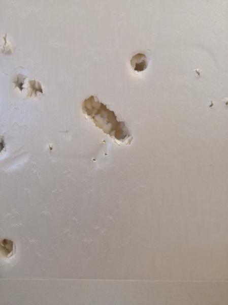 Esta carga me ha dado el blanco de la foto. No es gran cosa, pero por lo menos es regular (el impacto de la derecha es fallo del indio)...por cierto, molan mis parches eh