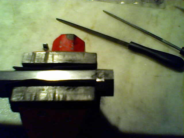 A continuación con una lima triangular sigo limando y haciendo el encastre de la cola de milano.