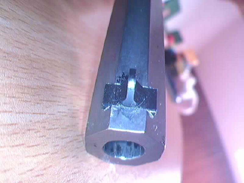 Después con el cañón bien sujeto a un tornillo de banco pero con una protección de goma voy marcando poco a poco donde va a ir la mortaja.