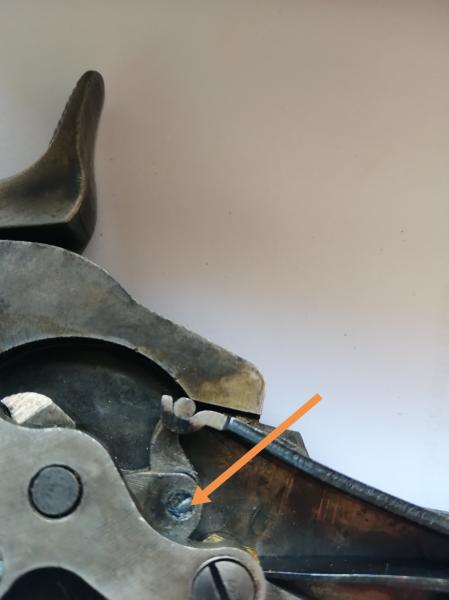 La primera fue que no montaba el martillo(apenas comenzar a montar se bloqueaba y no llegaba ni a la posición de seguro) debido al pequeño tornillo donde articula el enganche del muelle real. Este se aflojaba y entorpece la carrera del martillo al montar. Como consecuencia se gastó la pequeña cabeza y la ranura para atornillar desapareció en nada (tornilleria de mantequilla al carbono)
