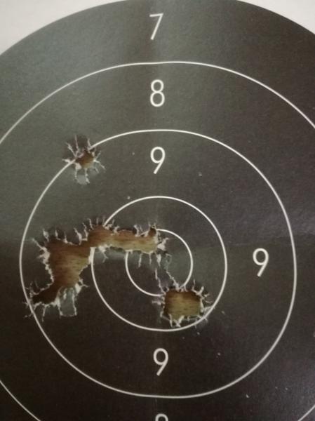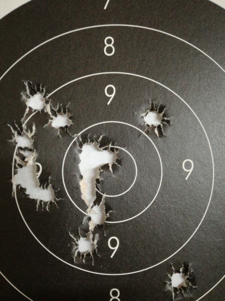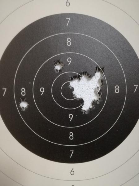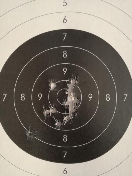 Después he tirado con el Mauser una serie de minie que me ha hecho disfrutar como hacía mucho que no lo hacía.He conseguido 89 puntos,que no son ningún record,pero he podido tirar en la postura en la que lo hacía antes de romperme todos los huesos del hombro y sin hacerme daño.Parece que el omóplato se ha pegado del todo y ha dejado de darme guerra.En la diana aparecen cuatro impactos de mas a la izquierda de otra tirada.Un saludo