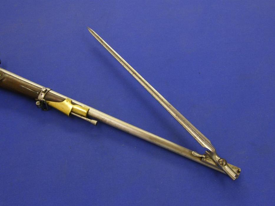 un cojonudo fusil de percusion holandes modelo M 1815-1, con bayoneta, procedente de la coleccion Visser en muy buen estado pero sin limpiar.