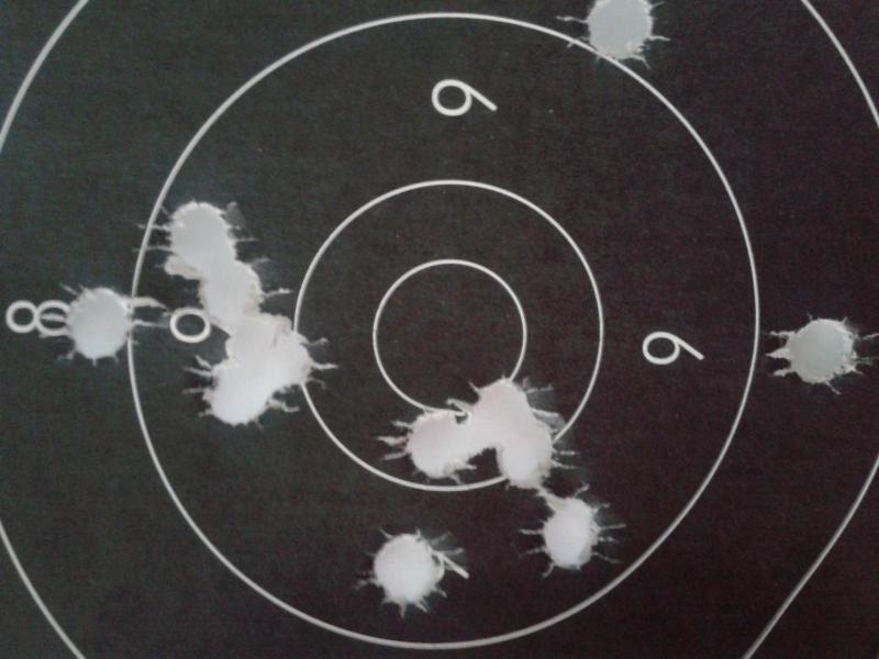 Pongo la diana de esta mañana porque me parece de lo mas didáctica.Se ve claro como un cambio de luz radical puede engañar al ojo del tirador.La primera parte de la diana está hecha con una luz fuerte que hacia que mirar a la diana molestara muchisimo.Buena parada del rifle y sin embargo un buen grupo en el nueve.A mitad de la tirada una nube dejaba una luz excelente y un grupo en el diez teniendo la sensación de apuntar igual durante toda la diana.