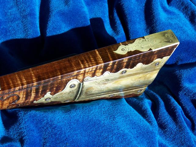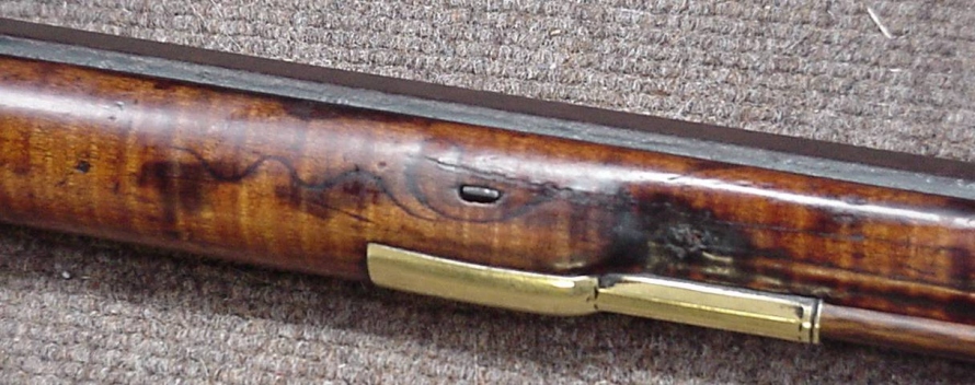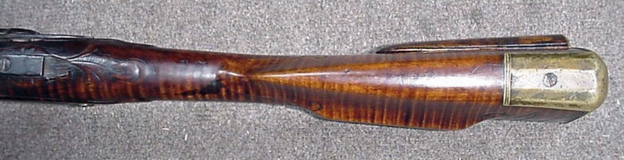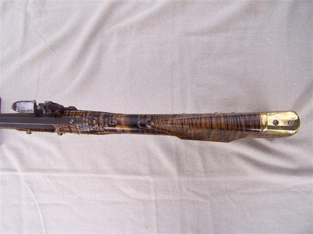 La población es aserrada trimestre de arce de azúcar con negrita rizo y es el alivio tallada detrás de la espiga y detrás de la pieza de la mejilla. Todavía conserva su patchbox originales de madera cubierta que está decorado con dos molduras único tipo de bodas banda a través de la tapa que coinciden con la moldura a lo largo de ambos lados de la longitud de la forestock. Las monturas son todos de bronce, incluida la pluma del "agujero" en la incrustación de la punta del fusil. La leyenda nos dice que esto se utilizó para celebrar una pluma de Blue Jay, un pájaro de los pioneros odiaban y mataron a todas las oportunidades que sus graznidos de alarma advertido con frecuencia que los nativos de un intruso invasor. Este rifle de gran calibre se hizo para y en la frontera de Kentucky en un momento todavía había gran juego ... oso, búfalo, alces, y los indios.