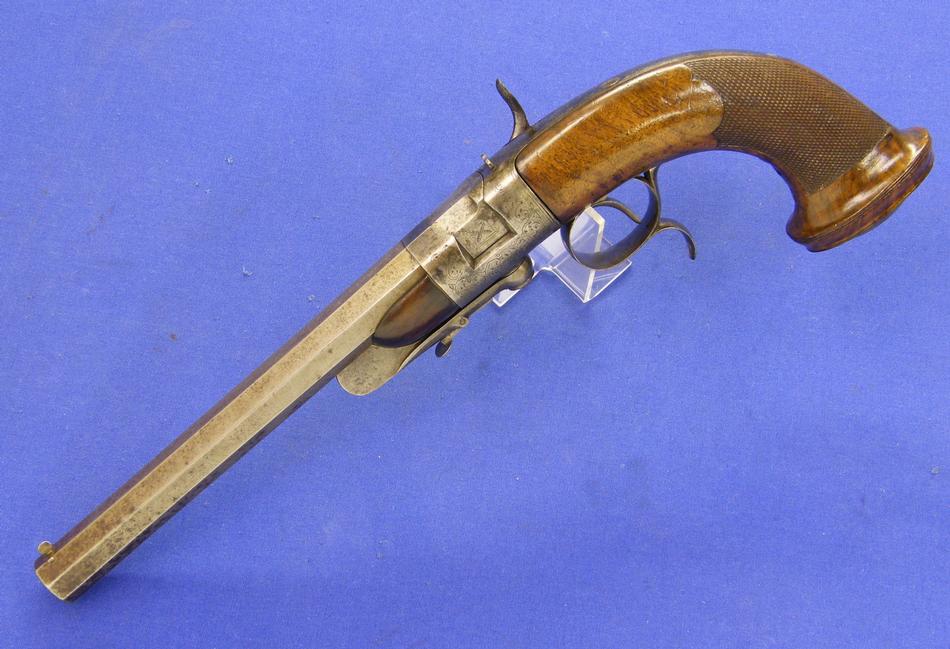Una rara pistola de percusion italiana de retrocarga Sistema Marelli, firmada AGOSTINO MARELLI A MILANO, calibre