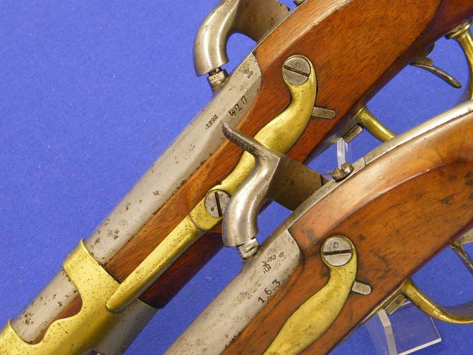 Pareja de pistolas militares holandesas modelo 1820, en calibre 18 mm. Y longitud de 37 cm. En condicon sin limpiar,
