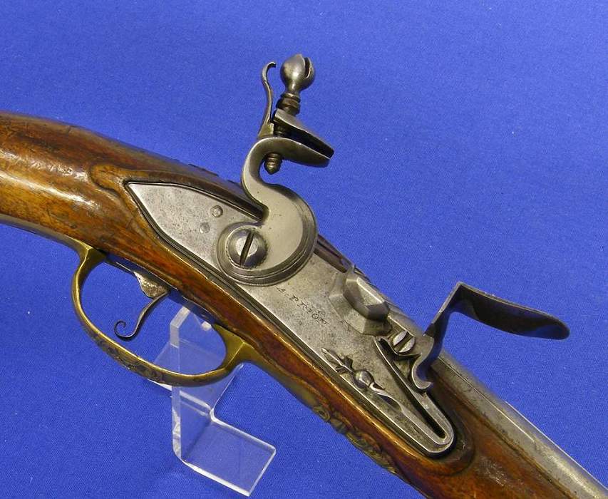 La belleza belga en forma de pistola de chispa del siglo XVIII firmada por A. Prion (Lieja) longitud de 50 cm en muy buen estado, sera tuya por 3.300 euros y los gastos.