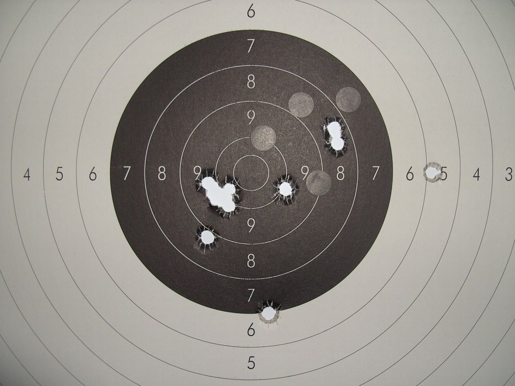 Despues de una temporada de haber dejado apartado el Sharp me he decidido a sacarle el polvo he ir a entrenar un rato con el , ya que me han medio convencido para ir a Logroño. y me encuentro con la misma duda que tenia a finales del año pasado. tengo problemas para saber donde van los tiros , y por mi parte no pasa nada, pero cuando voy alguna competicion son los arbitros quien tiene las dudas