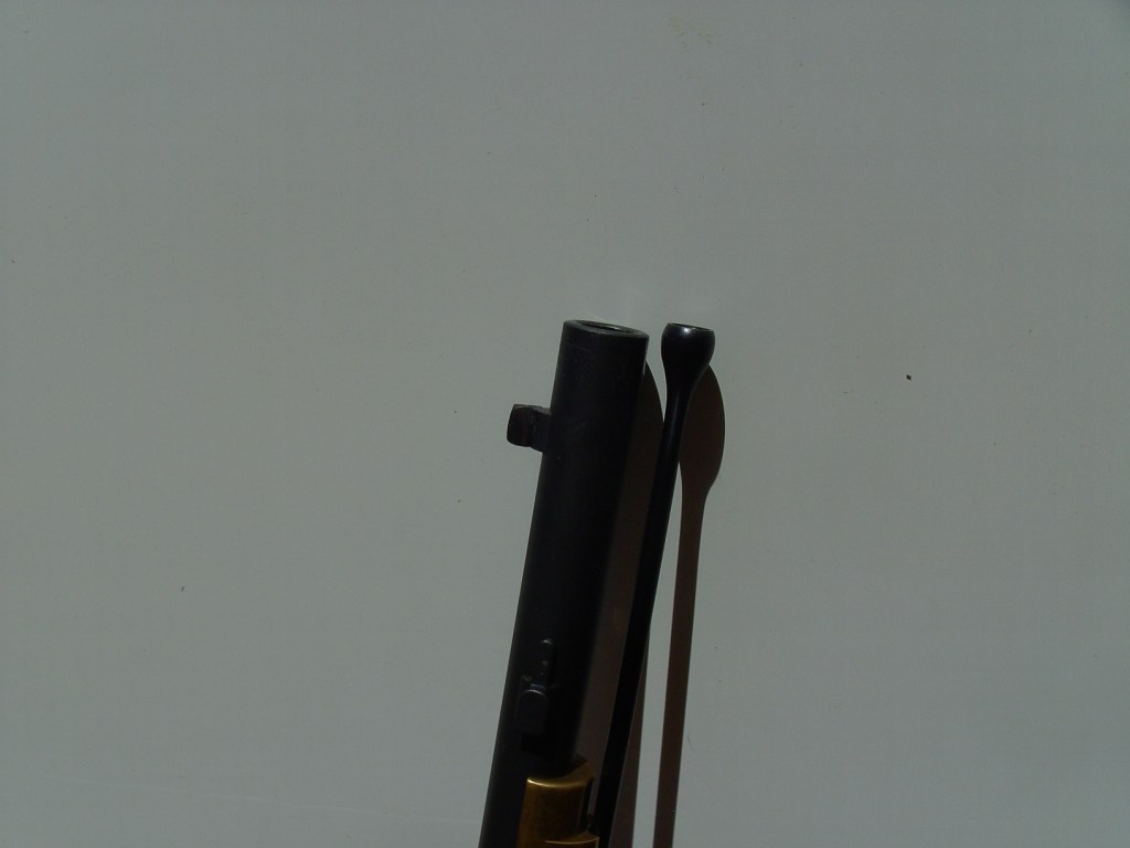 Para empezar voy a cambiar los elementos de puntería (por supuesto de forma provisional, luego volverán a su estado original) para eliminar los problemas de apuntar con el alza y el punto tan rudimentarios que lleva de serie. Ya he preparado un alza (en plástico) que pegaré a la del fusil, con la escotadura en forma rectangular en U, y un sobrepunto de mira (con material de soldadura en frio) también perfectamente rectangular (luego se retira fácilmente y se deja el suyo)