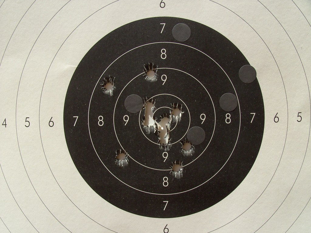 Primer disparo: 4 a las dos, no pasa nada pues el primero va donde le da la gana.