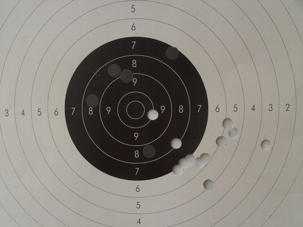 Como es normal, el primer disparo no entra en el blanco, bueno, como parece que este va por libre............ :roll:
