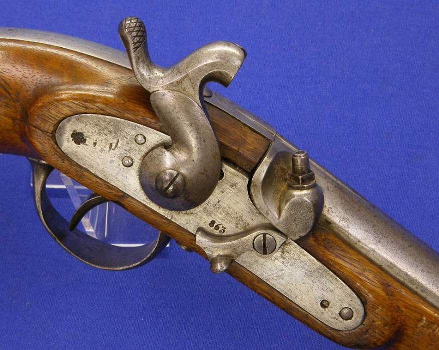 A good Italian Military Percussion Pistol made by Pirlox Freres Liege, Caliber 18 mm, length 38 cm