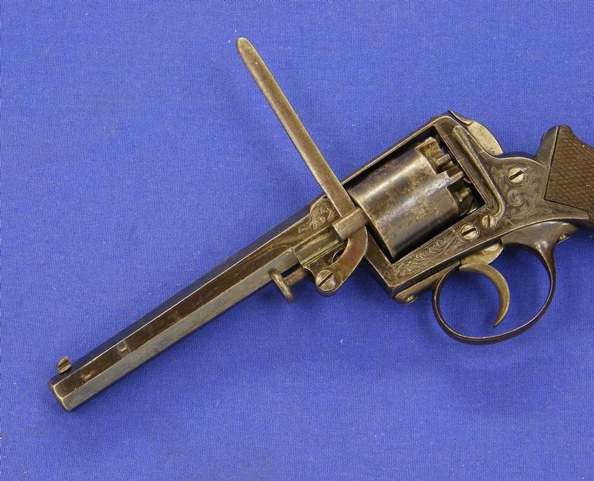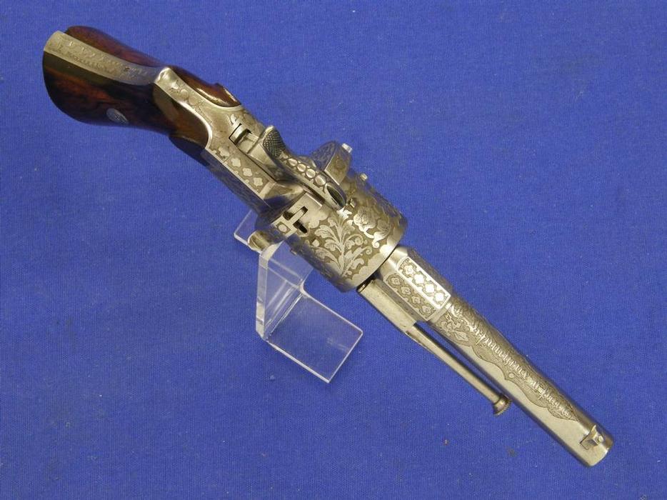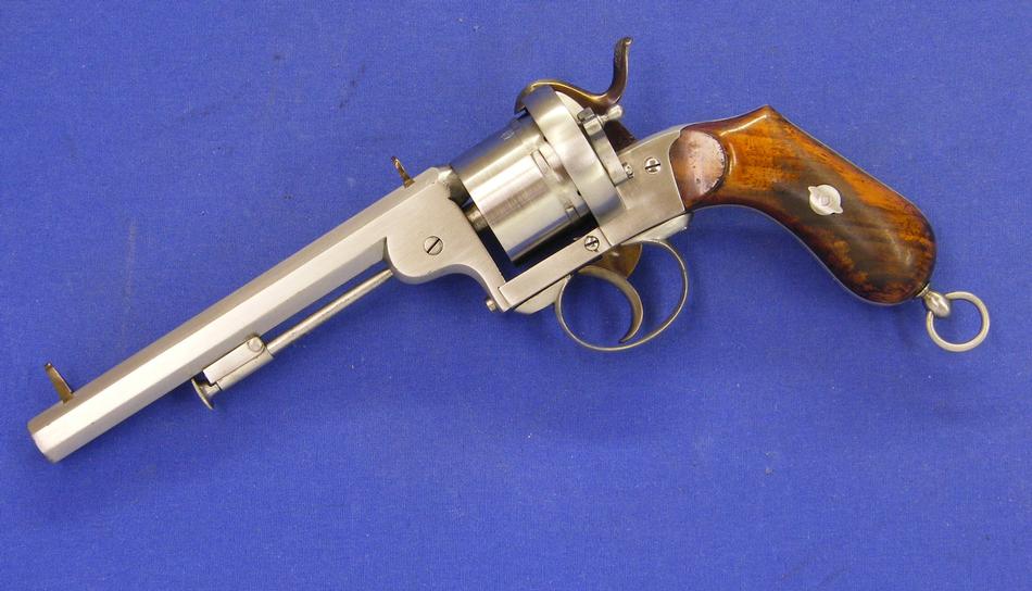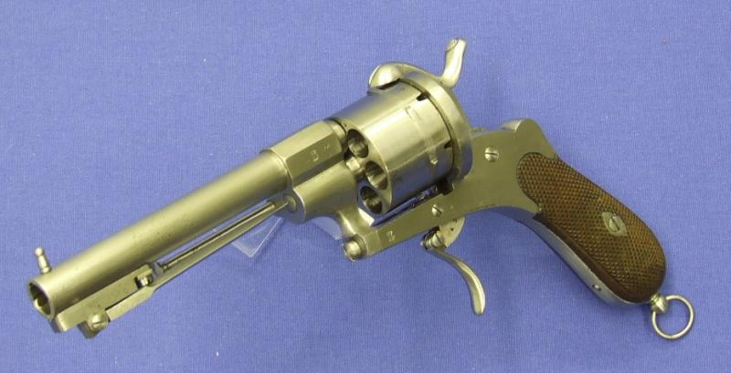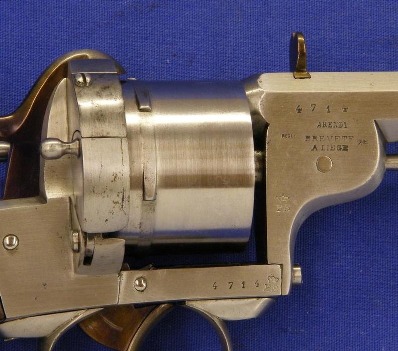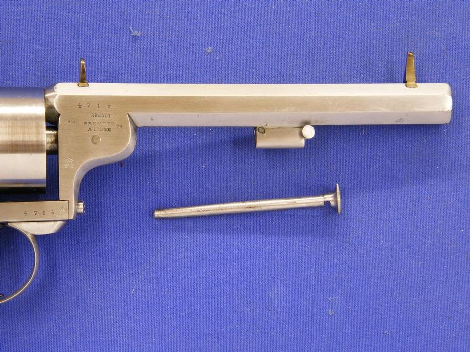 Bello y raro (por escaso) revolver holandes sistema Lafucheux (Maastricht) marcado Arendt Lieja y “PS” por P. Stevens Maastricht, calibre 11 mm, longitud 30 cm. En perfecto estado.