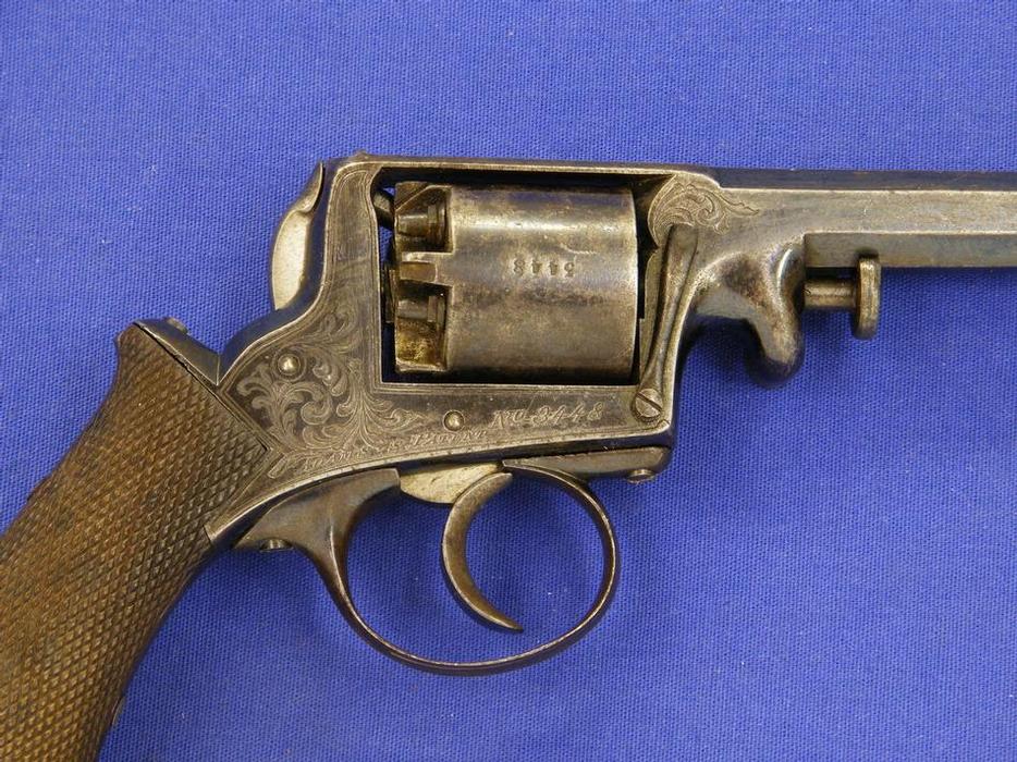 Revolver de percusion patente Adams, por Deane Adams & Deane, nº 3448, calibre 9 mm. Longitud 26 cm. En muy buen estado.