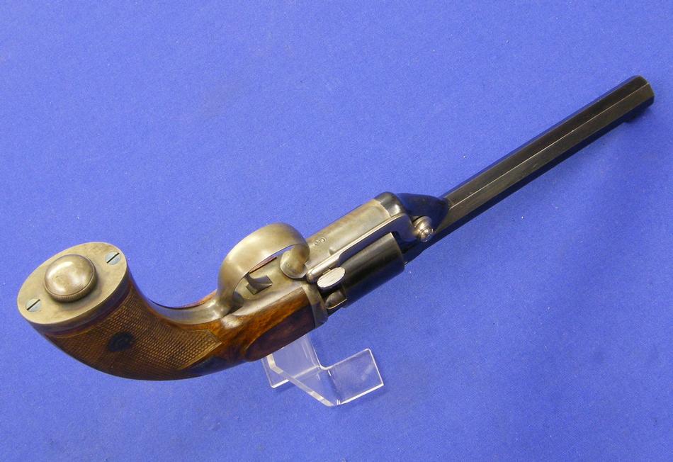 A very scarce Dutch pinfire revolver signed E. DE BEAUMONT (Maastricht) in mint condition, kal 11 mm, length 30 cm . Price 2.000 euro