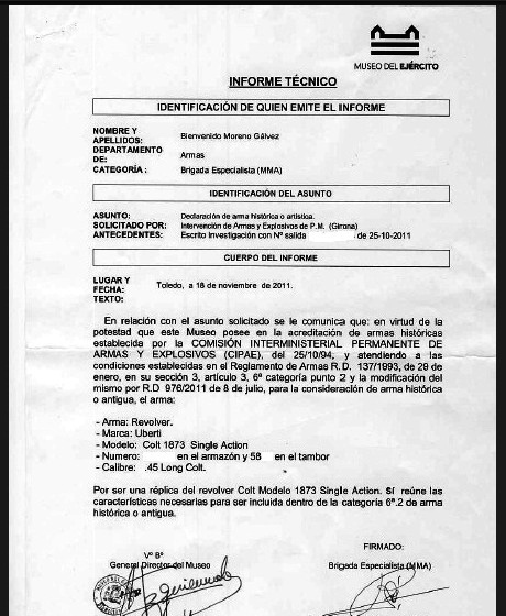 Ni que decir tiene que he omitido el número del arma y tambor.