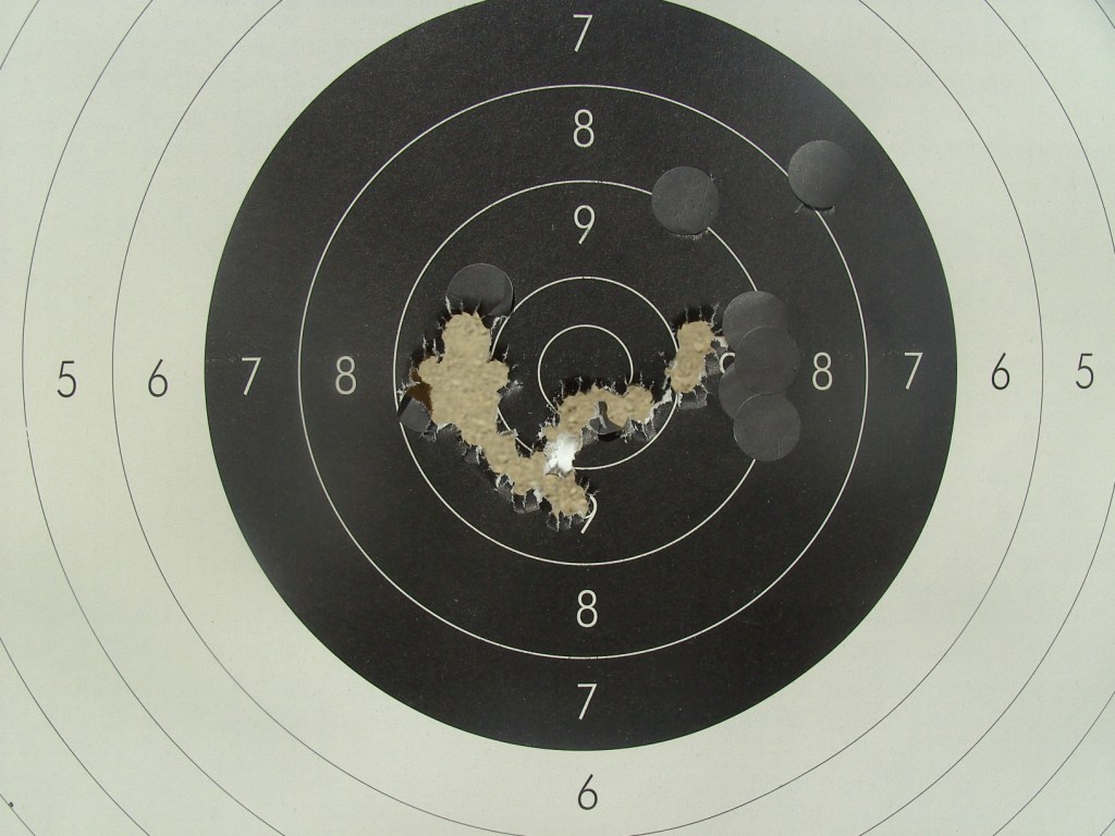 Me pongo a ello y sin tocar los elementos de puntería pues no tengo ni idea de a donde irá suelto el primer disparo