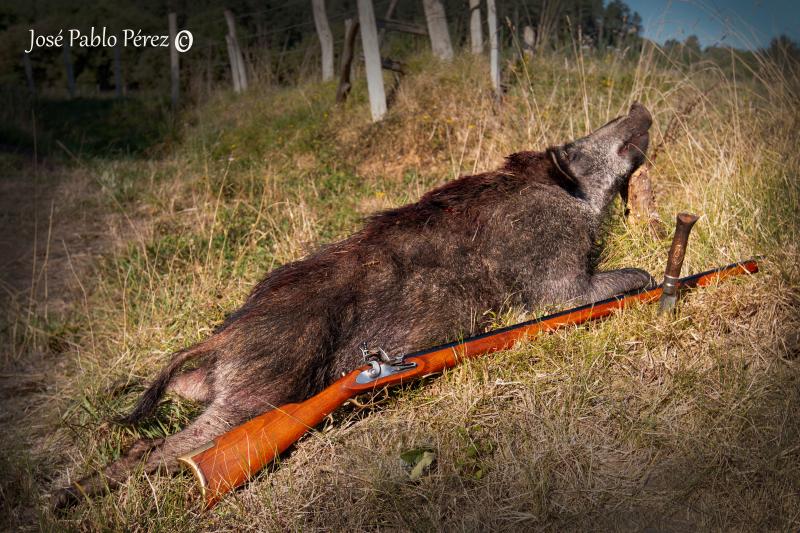 Bueno compañeros, despues de ir varios dias seguidos y ver como estaban entrando los bichos, me plantee la espera con avancarga, dude entre el calibre 45 o el 50, ya que ademas de las piaras rondaba un gran macho, finalmente me decidi por el kentucki 45 de chispa, le puse 60 grs de 3FFF y sabot de 250 grs.